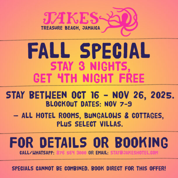 Let us know what sounds good to you and the Jakes Front Desk will be happy to arrange! Call 1-876-965-3000